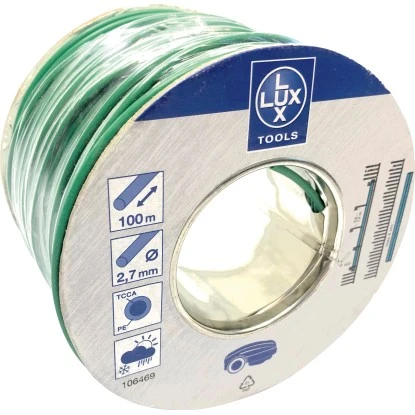 Das LUX-TOOLS Begrenzungskabel dient als Orientierung für Ihren Mähroboter und grenzt dessen Arbeitsbereich im Garten ein. Auch zur Verlängerung eines vorhandenen Begrenzungskabels kann es verwendet werden. Geeignet ist es dabei für alle gängigen Mähroboter wie Gardena, Worx, Yardforce, LandXcape oder Bosch. Gefertigt ist das Kabel aus langlebigem und witterungsbeständigem Kunststoff. Zudem zeichnet es sich durch eine Länge von 100 m aus und misst einen Ø von 2,7 mm. Der Begrenzungsdraht sollte in einer Tiefe von 4 cm verlegt werden.