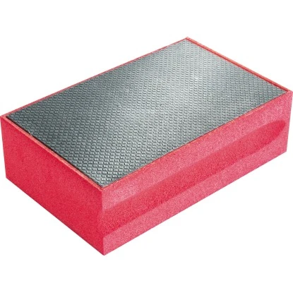 Das rote LUX-TOOLS Diamant Schleifpad erweist sich als nützliches Zubehör für Maurer- und Putzarbeiten. Es lässt sich ideal zum Schleifen und Polieren von Marmor, Glas, Keramik, Granit und Kalkstein verwenden. Mit seiner Körnung von 200 ermöglicht Ihnen das Pad aus Kunststoff ein besonders feines, reinigendes Schleifen. Für ein ermüdungsfreies Arbeiten und eine angenehme Handhabung ist es mit Kerbungen an den Seiten versehen. Das hochwertige Schleifpad mit Diamantbelag besitzt eine Länge von 94 mm bei einer Breite von 58 mm und einer Höhe von 28 mm. Mit diesen Maßen ist es besonders handlich.