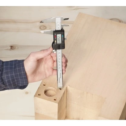 Die LUX-TOOLS Digitalschieblehre mit Feinjustierung (Daumenrädchen) und Feststellschraube misst exakt die gewünschten Abmaße.