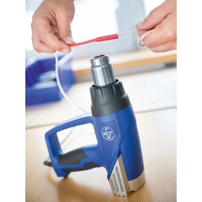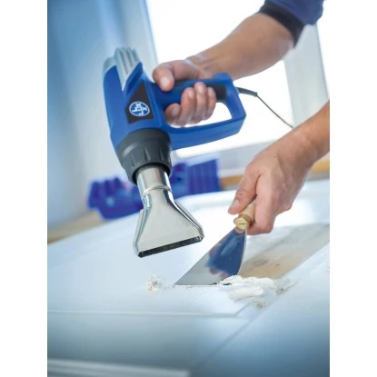 Die LUX-TOOLS Heißluftpistole HLP-2000 bietet Ihnen vielseitige Anwendungsmöglichkeiten für Hobby-Heimwerker und Handwerker. Sie löst mit ihrem heißen Strahl Klebstoff oder Farbe ab, dient zur Schrumpfung von Werkstücken oder beschleunigt Trocknungs- und Schmelzprozesse. Mit 2.000 W verfügt das Gerät über eine solide Leistung. Die Luftmenge ist zwischen 300 l/min – 500 l/min einstellbar. Sehr exakt lässt sich die Temperatur stufenlos im Bereich von 50 °C – 610 °C einstellen.