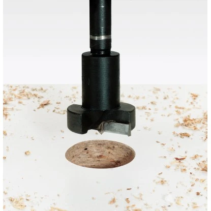 Der LUX-TOOLS Scharnierloch-Bohrer 26 mm aus hochwertigem Werkzeugstahl mit Hartmetall bestückt sorgt für saubere und ausrissfreie Bohrungen in harte Hölzer. Durch den Zylinderschaft ist ein Einspannen in eine Bohrmaschine problemlos möglich. Der Scharnierloch-Bohrer ist speziell für die Topfbandmontage und den Möbelbau geeignet. Die Gesamtlänge des Bohrers beträgt 60 mm.