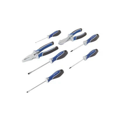 Das 7-teilige LUX-TOOLS Schraubendreher-Zangenset umfasst eine vielfältige Ausstattung, die in Ihrer Heimwerkstatt nicht fehlen darf. Die komfortablen 3-Komponenten-Griffe bieten sicheren Halt und angenehmes Arbeiten. Die Klingen der Werkzeuge sind aus hochwertigem Chrom-Vanadium-Stahl gefertigt.