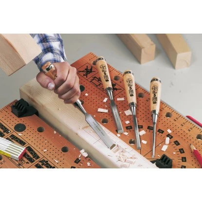 Der 4-teilige LUX-TOOLS Stechbeitel Satz mit Weißbuchengriffen besteht aus je einem Stechbeitel in den Größen 6 mm, 10 mm, 16 mm und 20 mm. Hergestellt aus Chrom-Vanadium-Stahl.