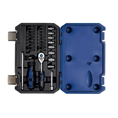 Mit dem 30-teiligen LUX-TOOLS Steckschlüsselsatz Comfort sind Sie für Ihre Heimwerkstatt bestens ausgestattet. Das hochwertige Set aus Chrom-Vanadium-Stahl befindet sich in einem robusten Kunststoffkoffer, in dem Sie Ihr Werkzeug sicher verwahren und leicht transportieren können.