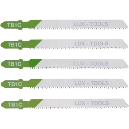 Die LUX Stichsägeblätter aus Bi-Metall mit T-Schaft eignen sich ideal für feine Schnitte in Holz mit einer Dicke von 2,2-30 mm oder Kunststoff mit einer Dicke von 2,2-20 mm. Die Gesamtlänge der Stichsägeblätter beträgt 100 mm und die verzahnte Länge 75 mm mit einer Zahnteilung von 2 mm. Im Lieferumfang sind fünf Stichsägeblätter enthalten.
